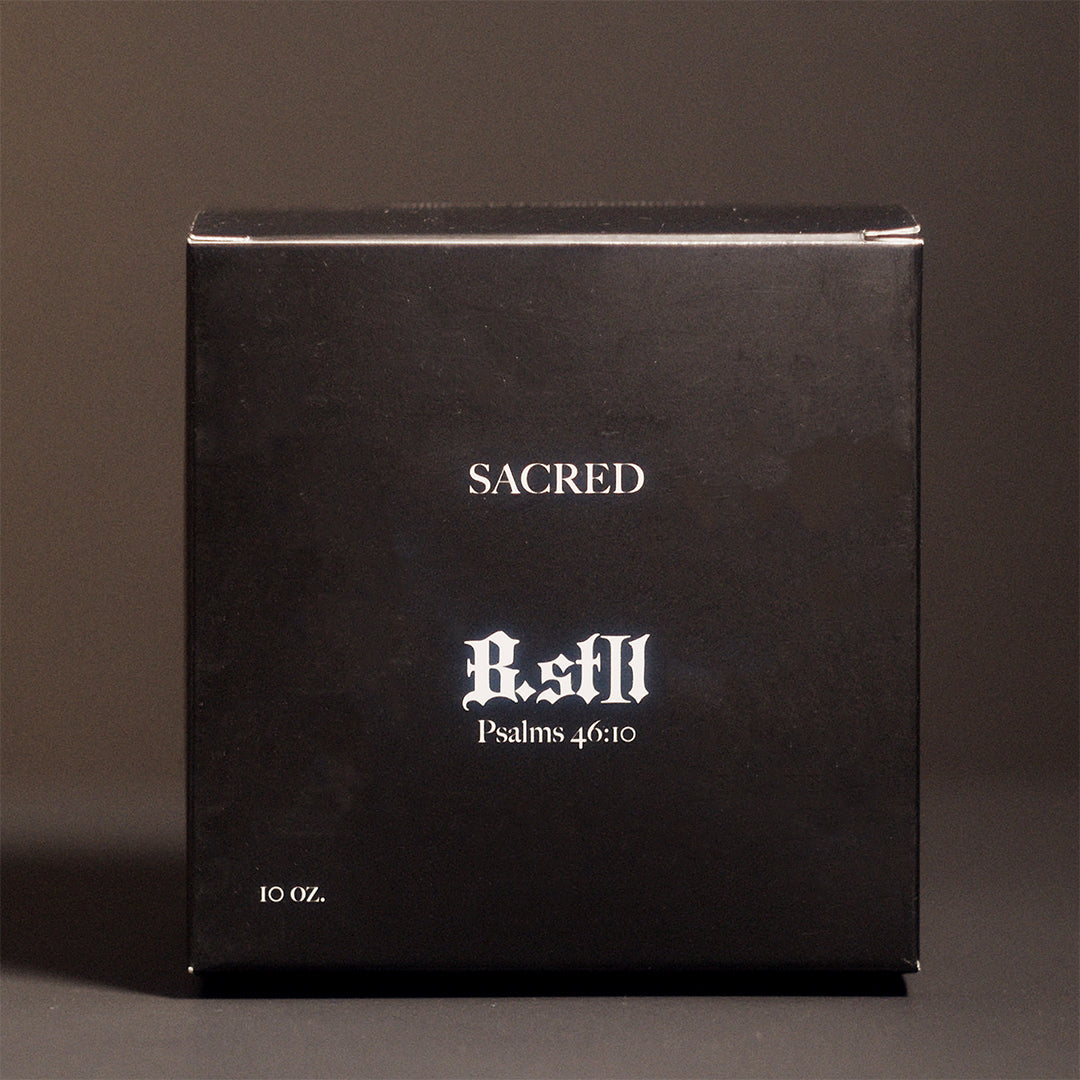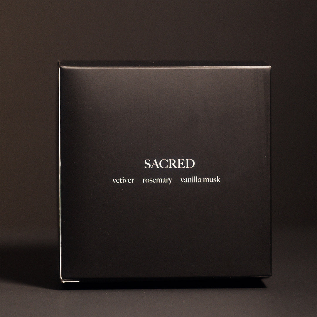 A quiet escape, captured in scent. Sacred blends earthy vetiver, fresh rosemary, and soft vanilla musk to create an atmosphere of calm sophistication. Light it to soften the edges of the day and bring a sense of ease to your space.